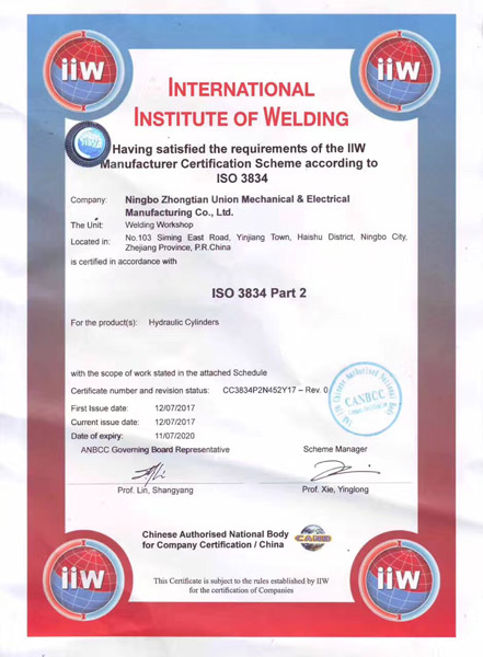 近期,中天公司取得ISO3834國際焊接體系認(rèn)證。
