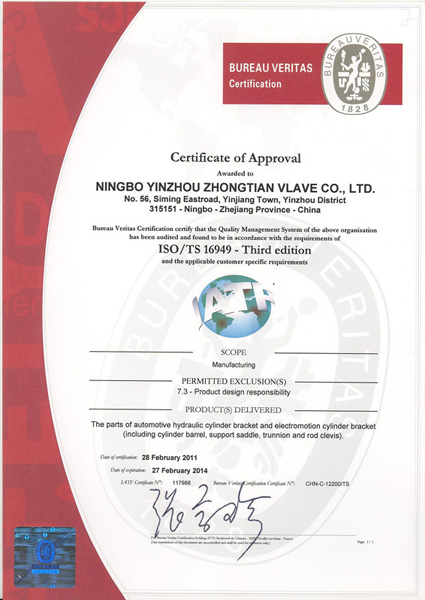 中天通過法國BV公司的ISO/TS16949第二版證書換證審核